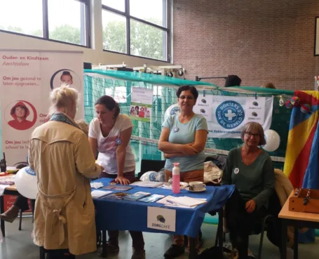 Bij de stand van Dokters van de Wereld is het druk. Petra Wisse, coördinator van het Zorgcafé van Dokters van de Wereld: “Het is belangrijk dat we hier vandaag zijn om het Zorgcafé onder de aandacht te brengen bij bewoners, bezoekers en andere organisaties. Dit is immers een plek waar iedereen zijn eigen steentje bij kan dragen aan het welzijn van nieuwkomers en asielzoekers”