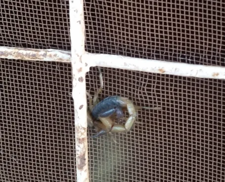 6.45 uur: mijn wekker gaat. Ik kijk door mijn klamboe de kamer rond. Een ruime kamer, met twee twijfelaars, een bureau, twee stoelen en een tv. Waarvan ik niet weet of die eigenlijk werkt. Ik spring de badkamer in. Ben vergeten de geiser aan te zetten, dus deze ochtend wordt het een frisse koude douche. Mijn garderobe, welke anders is dan thuis, bestaat uit veelal een lange rok, in ieder geval bedekte benen en blouses met lange mouwen. De gemiddelde Tanzaniaanse dresscode. We hebben allen aparte kamers naast elkaar in twee losse gebouwen, met tegenover ons de eetzaal. Ontbijten doen we iedere dag gezamenlijk om 7.00 uur. Het eerste interessante diertje kom ik tegen op de hordeur naar de eetzaal. Een schorpioen! Dit doet me beseffen dat we echt in Afrika zitten. Dus enige voorzichtigheid, bij het instappen in je schoenen, is niet overbodig.