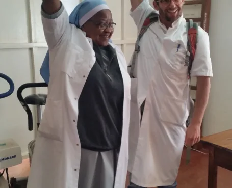 5.30 uur: de hanen kraaien en de honden en duiven zijn ook al wakker als ik mijn ogen opendoe. Ik blijf nog even liggen luisteren naar alle dierengeluiden en kruip dan onder mijn klamboe vandaan. Vandaag zal ik een dag op de OK staan. Ik zal wat foto´s en filmpjes maken tijdens de operaties. Vanochtend worden twee meisjes geopereerd, van vijf en vijftien jaar oud. Beiden zijn in het vuur terechtgekomen en hebben daardoor ernstige vergroeiingen. Tijdens de operaties opereert een non mee, Sr. Avelina, een gedreven dame die heel graag wil leren van onze chirurgen. Tijdens de operaties zuigt ze als een spons alle informatie op. Ze is nu voor de tweede keer aanwezig tijdens een missie. Heel mooi om te zien, hoe zij on the job getraind wordt door Paul. De operaties zijn ingrijpend, zeker als je zoals ik niet gewend bent om op de OK te staan, maar zo bijzonder om te zien.
