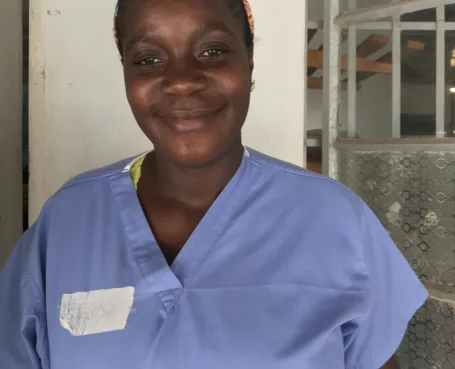 Daphne werkt als Clinical Health Officier in het Masanga-ziekenhuis. Ze woont eigenlijk in Freetown, waar haar man en drie dochters zijn, en werkt tijdelijk in het Masanga-ziekenhuis om een opleiding te volgen zodat ze leert basale operaties uit te voeren.