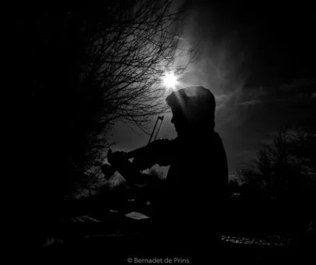 Bij de tent van Dokters van de Wereld spreekt Aziz mij aan. In opvallend goed Engels legt hij me uit dat hij in Irak dezelfde camera had als ik. Meerdere malen is hij in Irak met de dood bedreigd om redenen die beter niet naar buiten kunnen komen. Schichtig kijkt hij om zich heen, terwijl hij me dit toefluistert. Onderkoeld vertelt hij dat hij in Irak best beroemd was. Regelmatig was hij op tv. Ook gaf hij les op een kunstacademie. Trots laat hij op z'n smartphone zijn vioolspel zien en horen. "Maar dat wil ik best live horen", reageer ik enthousiast. We ontmoeten elkaar diezelfde middag bij zijn tent. Daar trap ik nog net niet op een dode rat. Aziz is bang dat hij zelfs hier wordt achtervolgd. Hij is hier alleen. No friends, no family. Geen aansluiting bij anderen. Ook doet hij geen poging meer om naar Engeland te gaan. Te uitgeput van de schurft en de angst. Een keelontsteking maakt het er niet beter op. Met zijn droevige ogen vertelt hij dat zijn twee broers in Engeland wonen. "Ze kunnen niets voor mij doen..." Ik moedig hem aan om voor ons viool te spelen. Uit zijn lage tent haalt hij een stevige vioolkoffer. Hij stemt zijn viool, kijkt aarzelend om zich heen, legt aan. Dan keert zijn blik naar binnen toe. Klanken rollen over zijn tent. Vergeten is de blubber, het gemis, de angst, de jeuk. Ik waan me even in een film. Vooral nadat een andere man komt aangesneld en vraagt of ook hij even mag spelen. Ook hij speelt. Op het gezicht van Aziz verschijnt een brede glimlach. Overburen roepen Aziz. Ze gebaren: kom hier spelen. En Aziz speelt. De mannen neuriën mee. Een jongeman slaat zijn handen voor zijn ogen. Is broederschap geboren?