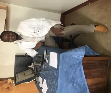 Joop: “Dr. Bellet is een 37 jarige orthopeed en groeide op in Haydom. Hij ging daar naar school, studeerde medicijnen aan de universiteit in Moshi (een grote stad in het oosten van Tanzania) en deed daar ook zijn co-schappen. In 2012 keerde hij terug naar Haydom waar hij twee jaar werkte op de afdeling orthopedie en op de intensive care. Hij besloot zich te specialiseren in orthopedie, een opleiding die vier jaar duurt. Ik ontmoette Dr. Bellet voor het eerst tijdens onze missie in oktober 2018. Hij vertelde dat hij zich samen met zijn vrouw en drie kinderen heeft gevestigd in Haydom. Ze wonen op het terrein van het ziekenhuis en voelen zich daar thuis.