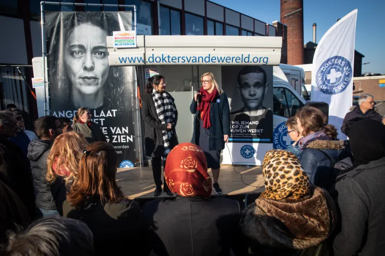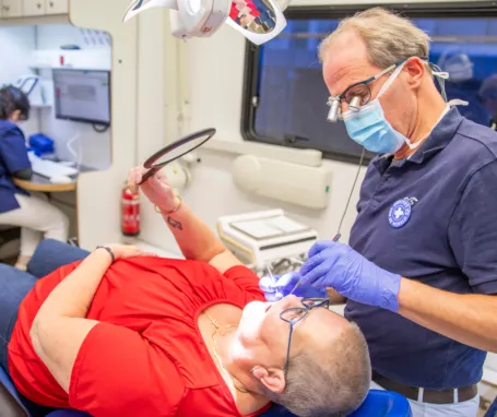 De Mondzorgkaravaan van Dokters van de Wereld trekt sinds 2019 door het hele land, van Groningen tot Maastricht. Waar we neerstrijken, voert onze vrijwillige tandarts noodbehandelingen uit en geeft een mondhygiënist poetsinstructies. Met de Mondzorgkaravaan helpen we mensen met gebitsproblemen én vragen we aandacht voor de zeker 1,5 miljoen mensen in Nederland die mondzorg mijden omdat ze het niet kunnen betalen.