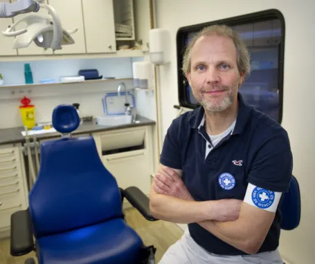 'Wanneer ik voor Dokters van de Wereld werk, zie ik mensen die het financieel niet breed hebben', vertelt Xander over zijn vrijwilligerswerk. 'Maar ook ongedocumenteerde mensen, ex-verslaafden of mensen met psychische klachten. ‘Mensen vertellen mij soms beschaamd dat ze al 25 jaar geen tandarts meer hebben gezien. Angst voor de rekening speelt daar vaak een rol in; een angst die helaas terecht is in ons land.'
