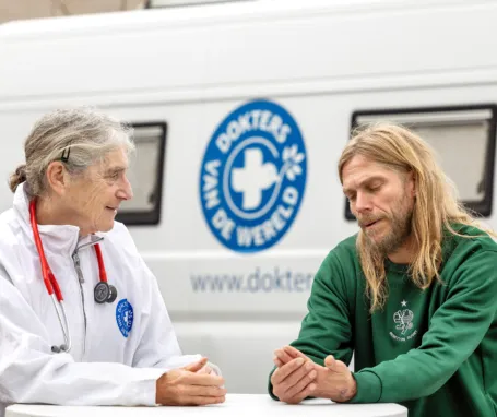 Iedere dag staan wij op voor mensen die buiten de boot vallen. Voor mensen die ziek zijn maar nergens terechtkunnen. Die hulp nodig hebben maar geen toegang hebben tot zorg. Maar dat kunnen wij niet alleen. Om zorg te kunnen bieden aan mensen die tussen wal en schip vallen – vandaag én morgen – hebben we jouw steun hard nodig.