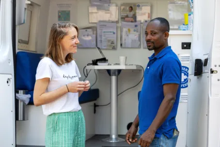 De patiënten die de Zorgbus bezoeken hebben vaak geen huisarts. Naast het behandelen van hun klachten geeft Merel ook toelichting over hoe het Nederlandse zorgsysteem werkt. Dit is een grote uitdaging, vertelt ze, vooral voor mensen die de taal niet spreken. ‘Door dit werk besefte ik hoe ingewikkeld het zorgstelsel is als je niet in Nederland opgegroeid bent. Deze mensen lopen tegen enorme drempels aan. Onlangs zag ik een man die alleen Spaans sprak waardoor het hem niet lukte om een afspraak bij de huisarts te maken. Uiteindelijk kwam hij met zijn klacht naar onze Zorgbus.'
