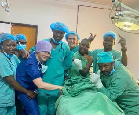 Chirurgen van Dokters van de Wereld trainen lokale collega’s in Tanzania in de behandeling van open en complexe botbreuken. De Nederlandse en Tanzaniaanse trainers maken ter plaatse ook behandelplannen voor een aantal patiënten en voeren samen operaties uit.