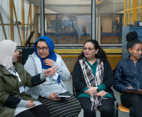 Een groep vrouwen voltooit één van onze METS-trainingen. METS staat voor Method for Empowerment of Trauma Survivors. Veel mensen die wij op onze spreekuren zien, worstelen met mentale klachten; vaak door trauma’s. Onze psychosociale activiteiten, ondersteund door cultuurmediators, helpen hen weer grip op hun leven krijgen.