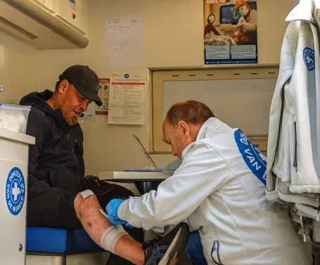 In de winter staan veel dakloze mensen in Nederland letterlijk én figuurlijk in de kou. Wie op straat leeft en ziek wordt, kan vaak nergens terecht voor zorg. Daarom gaan wij met onze Zorgbus naar hen toe. We behandelen ontstoken wonden, verzorgen pijnlijke voeten en geven mensen schoon verband of warme sokken.