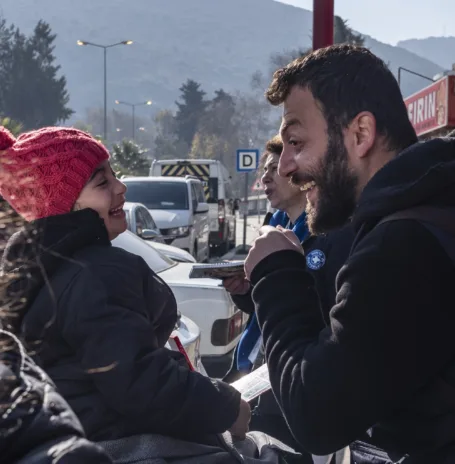 Onze mobiele medische teams zijn actief in de provincie Hatay. We coördineren de noodhulp, geven consulten en delen gratis medicatie en hygiëneproducten uit. Ook bieden we veilige ruimtes, waar vooral vrouwen en kinderen kunnen douchen en groeps- en individuele counseling kunnen krijgen. Via een mobiele keuken delen we eten uit. Ons team geeft ook voorlichting over hygiëne en seksuele en reproductieve gezondheid. We bieden zorg aan zwangere en pas bevallen vrouwen en verwijzen hen door naar gynaecologen. Ook bieden we counseling aan mensen die getraumatiseerd zijn door de aardbeving. Daarnaast organiseren we voorlichtingssessies over hygiëne om schurft te voorkomen.