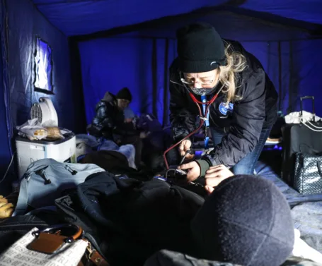 Ook in Nederland zijn er soms noodsituaties, waarbij Dokters van de Wereld in actie komt. Bijvoorbeeld in 2022 toen veel Oekraïners naar Nederland vluchtten. Op veel plekken kwam de zorg aan hen moeizaam op gang, terwijl de medische nood hoog was. Dus gingen onze vrijwillige artsen in onze Zorgbussen spreekuren houden bij opvanglocaties.