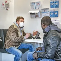 Na Amsterdam en Nijmegen kent nu ook Arnhem een Zorgcafé. Het Zorgcafé van Dokters van de Wereld is een laagdrempelig spreekuur waar nieuwkomers terechtkunnen met vragen over hun gezondheid. “We kregen bij ons Zorgcafé in Nijmegen steeds meer verzoeken van vluchtelingen en migranten om ook in Arnhem van start te gaan”, vertelt Karlijn Hendriks, coördinator van de Zorgcafés in Arnhem en Nijmegen. “Nieuwkomers hebben behoefte aan een luisterend oor, zeker omdat velen door corona de afgelopen tijd wat geïsoleerd zijn geraakt. Sommigen zoeken hulp bij het verwerken van traumatische ervaringen, anderen willen informatie over corona en vaccinaties. Vandaar dat we op zoek zijn gegaan naar een geschikte locatie en vrijwilligers.” Dat is gelukt. Het Zorgcafé heeft onderdak gevonden in het gebouw van Refugee Company. Op 18 juni kon het officieel zijn deuren openen en voortaan kan iedere nieuwkomer elke woensdag van 13.00 tot 15.00 uur binnenlopen in A Beautiful Mess, in het Sonsbeekpark. Brug slaan In het Zorgcafé slaan vrijwillige artsen, verpleegkundigen, psychologen en cultuurcoaches in diverse talen een brug tussen nieuwkomers en de reguliere zorg. Het team luistert zorgvuldig naar hun klachten, biedt psychosociale ondersteuning en signaleert vroegtijdige tekenen van ernstige psychische problematiek. Ook geven zij voorlichting over hoe de Nederlandse gezondheidszorg is georganiseerd. Hendriks: “Dat is hard nodig, omdat er vaak grote verschillen bestaan tussen de zorg hier en in het land van herkomst. Een heel simpel voorbeeld: een huisarts in Nederland ontvangt zijn of haar patiënten in gewone kleren, maar in veel andere culturen is een dokter iemand in een witte jas en met diploma’s aan de muur. Dat moet je dus uitleggen, anders neemt iemand de huisarts niet serieus.” Cultuurcoaches onmisbaar Om ervoor te zorgen dat nieuwkomers zich letterlijk en figuurlijk gehoord voelen, zijn cultuurcoaches of cultuurmediators van onschatbare waarde. Zij komen zelf uit onder meer Syrië, Iran, Somalië, Eritrea of Afghanistan, spreken de taal en kennen de cultuur. Daardoor begrijpen zij klachten van nieuwkomers beter en pikken ook de non-verbale signalen en de zaken die niet uitgesproken worden op. Ook voor het Reach Out programma , dat vluchtelingen en migranten ondersteunt die seksueel en gendergerelateerd geweld (hebben) ervaren, zijn deze cultuurmediators van groot belang. De afgelopen anderhalf jaar is met financiële steun van de EU een groep van 26 cultuurmediators getraind. Zij hebben in informatiesessies met mensen uit hun eigen gemeenschap of taalgebied groepsgesprekken gevoerd over seksueel en gendergerelateerd geweld en informatie verstrekt over de beschikbare hulpverlening in Nederland. Bespreekbaar maken “Dit project is slechts een eerste aanzet, maar heeft het thema wel al op de kaart gezet bij reguliere zorgverleners, migrantenorganisaties, steunorganisaties en vluchtelingen- en migrantengemeenschappen zelf”, zegt projectcoördinator Petra Wisse. “Het is voor Nederlanders al een moeilijk onderwerp, laat staan dat je in een land woont waar je de taal niet spreekt, in een omgeving zit die jou de schuld zal geven en zorgverleners die niet weten hoe dit bespreekbaar te maken. Dan voel je je heel eenzaam en onbegrepen.” Dat herkent cultuurmediator Haweya uit Somalië. “Als meisje ben ik besneden, maar over de gevolgen daarvan werd niet gepraat. Ook niet toen ik als volwassen vrouw in Nederland van mijn twee jongste kinderen beviel. Het werd genoteerd in mijn medisch dossier, maar niemand sprak er met mij over. Daarom wil ik dit thema bespreekbaar maken, bij Nederlandse zorgverleners en binnen mijn eigen gemeenschap.” Mondzorgkaravaan Om de opening van het Zorgcafé extra luister bij te zetten, werden er op 18 juni in het Arnhemse Sonsbeekpark diverse activiteiten georganiseerd. Tientallen vrijwilligers lieten bezoekers kennismaken met ons werk. Ook de Mondzorgkaravaan , bestaande uit een mobiele tandartsspraktijk en poetsvoorlichtingsbus, was aanwezig. Veertien mensen (statushouders en ongedocumenteerden) met gebitsproblemen v